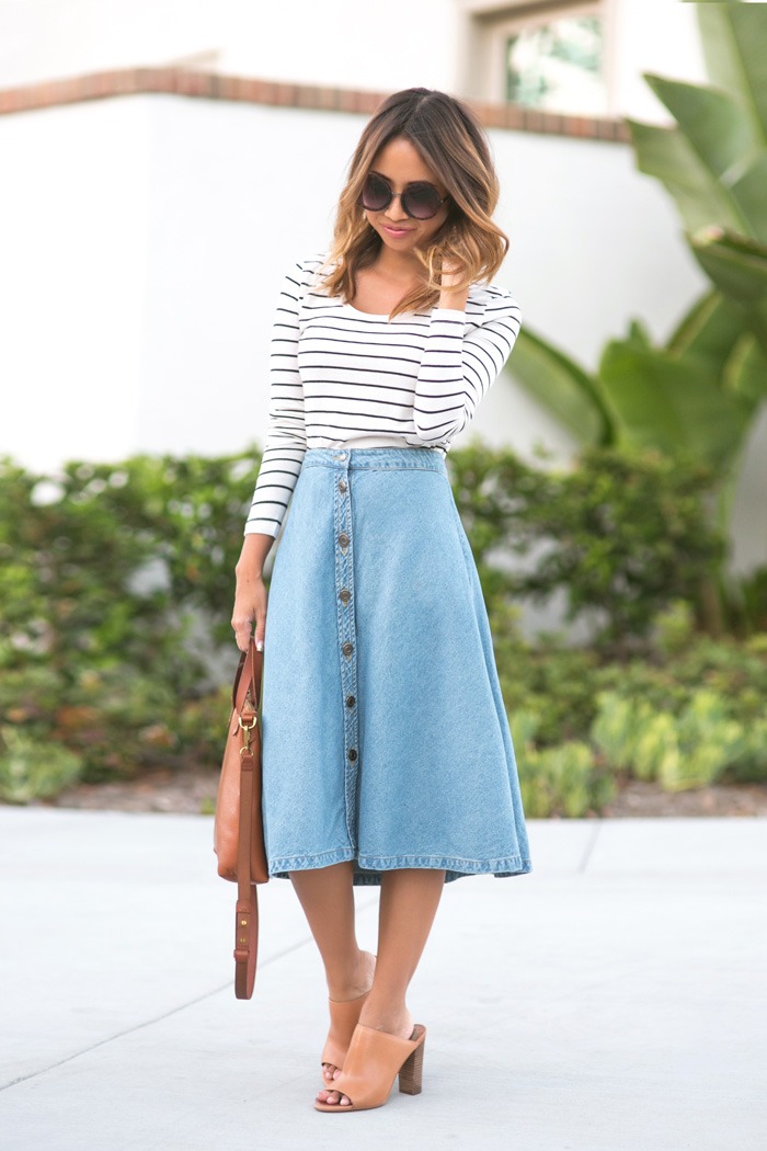 Щоб відповісти на питання: «З чим носити джинсову спідницю?» потрібно спочатку визначитися з її фасоном. Адже те, що підійде до міні буде зовсім недоречно в поєднанні з максі. До підбору стильною джинсовій спідниці потрібно підійти серйозно, орієнтуючись виключно на пропорції власної фігури. Модні джинсові спідниці складних фасонів можуть чудово виглядати на моделі в журналі для жінок, але вам зовсім не підійти. А може вийти і навпаки – моделі, які вам здаються занадто сміливими, сядуть ідеально – так що не бійтеся експериментувати.