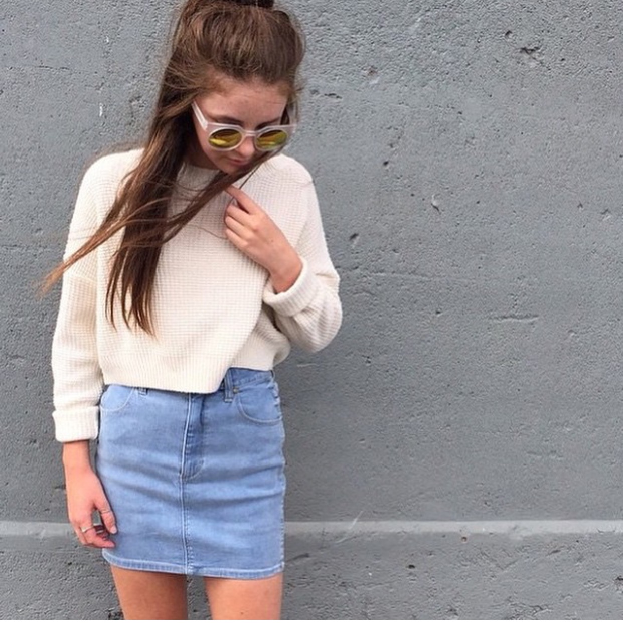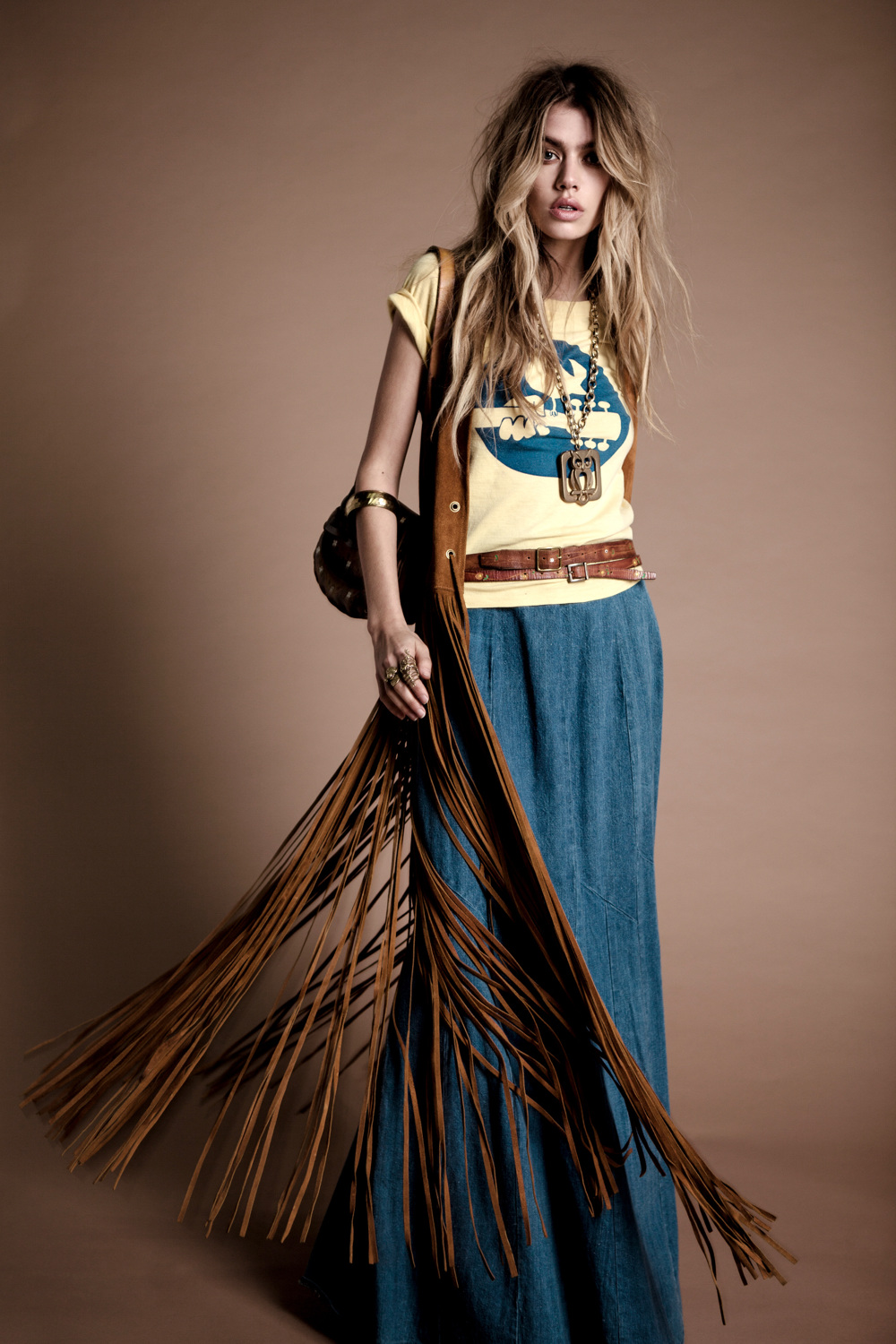 У 70-х роках джинсові спідниці були улюблені в середовищі хіпі за комфорт, відчуття свободи і універсальність. Їх носили з мокасинами і кедами, до речі, це і сьогодні одне з найактуальніших образів. Крім того, джинсові спідниці будуть ідеально поєднуватися з будь-яким класичним гардеробом. У зимовий час року до спідниць з деніму чудово підійдуть водолазки і щільні монохромні колготки.