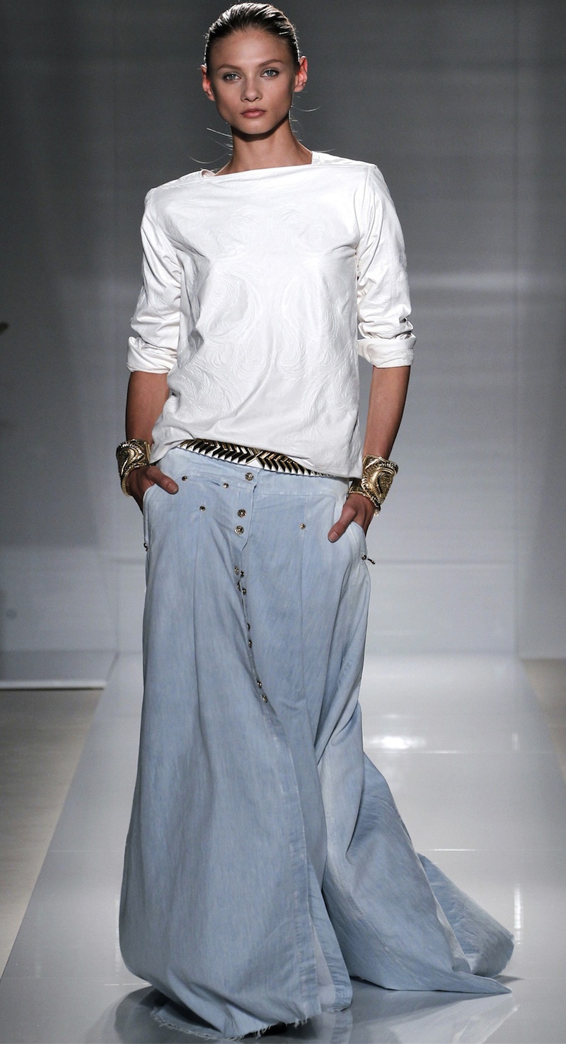 Джинсова спідниця-максі з ремінцем і білої вільною сорочкою