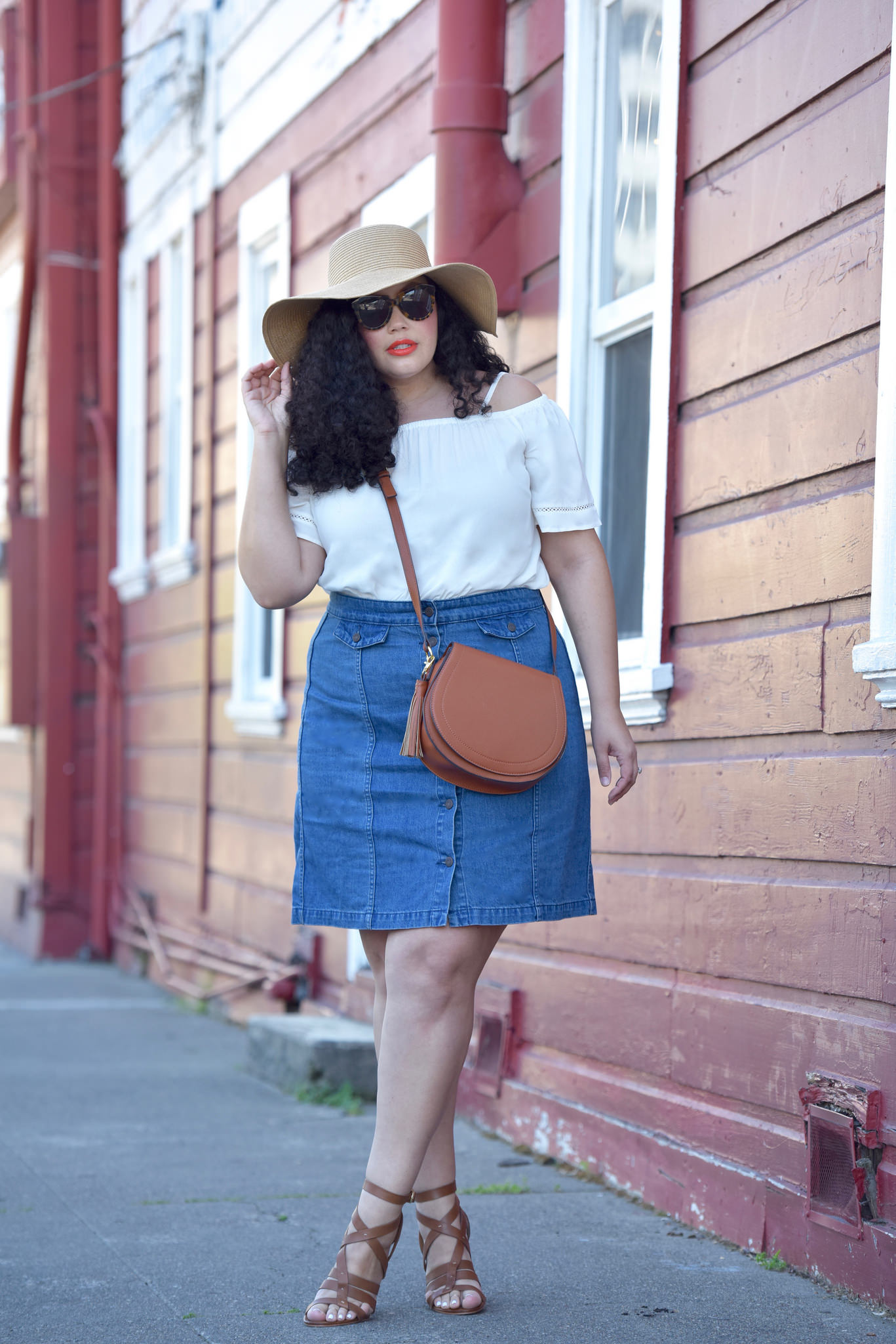 Навіть жінки королівських форм сьогодні можуть знайти модну джинсову спідницю великих розмірів. Імениті бренди і демократичні марки запускають лінії одягу розміру «плюс», тому підібрати джинсові спідниці для повних дівчат не складе праці. Коротка спідниця підійде дівчатам зі стрункими ніжками, і джинсові моделі класичного синього кольору – не виняток. А от жінкам з повною фігурою потрібно обережно поставитися до вибору фасону спідниці, адже вона повинна не просто добре сидіти, але і підкреслювати достоїнства, вміло приховуючи недоліки.