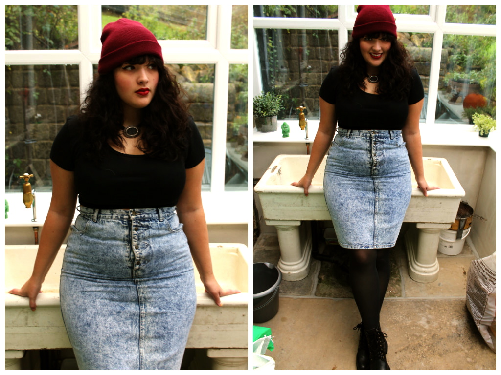 Образ на осінь — джинсова спідниця і чорна водолазка