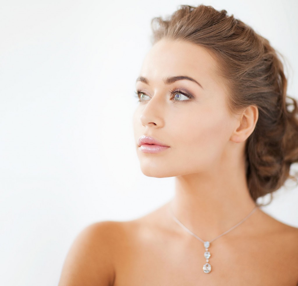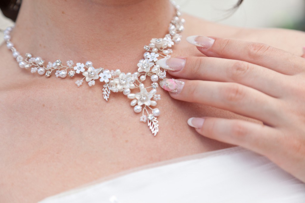 При виборі весільних прикрас для зони декольте головне — їх гармонійне поєднання з нарядом і формою обличчя. Наприклад, якщо у Вас кругле обличчя, то варто віддати перевагу довгим витягнутим перлин, кулону або ланцюжку. А ось весільна біжутерія-«нашийник» в даному випадку не підходить.
