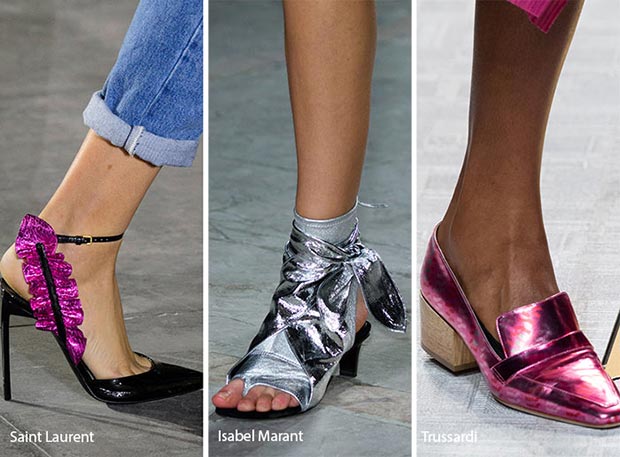 Східні конструкції від Gucci з ремінцями на щиколотках, безумовно були тими самими конструкціями, в які можна вкласти кошти цієї навесні і влітку. Блискуча пара від Balmain, також справила враження ультрамодного взуття гідною, щоб зустріти у ній новий модний сезон.