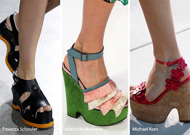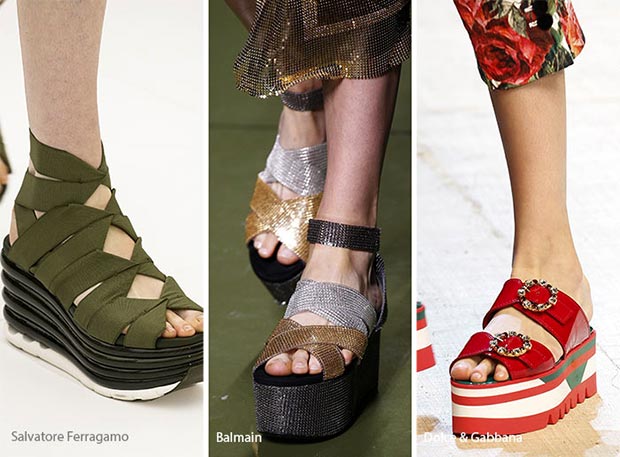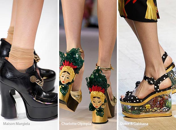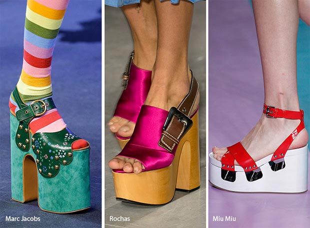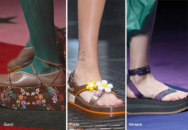 Китайські і японські мотиви стали героями весняних показів взуттєвої моди в цьому сезоні. Ця тенденція спостерігалася протягом усього Тижня моди по всьому світу – від традиційної флэтформы з ремінцями від Gucci, до повністю синтетичних флэтформы від Prada. Блискучі версії з липучками на щиколотках були показані в колекціях від Versace.