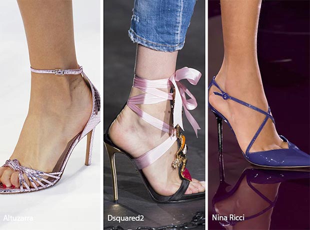 Виявляється, що гомілковостопний суглоб, є тією частиною тіла, яку в першу чергу потрібно підкреслити навесні-влітку 2017. Модне взуття з ремінцями і зав’язками із замші, зміїної шкіри і тканини – це хіт літнього сезону. Не залежно від матеріалу, найтонша частина жіночої ноги, за допомогою оригінальних лямок, повинна привертати увагу оточуючих у новому сезоні відпусток.