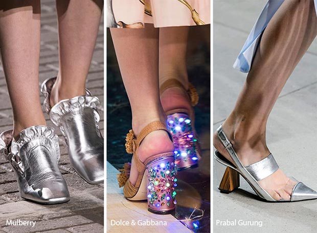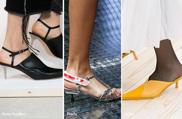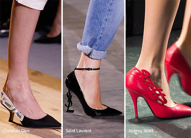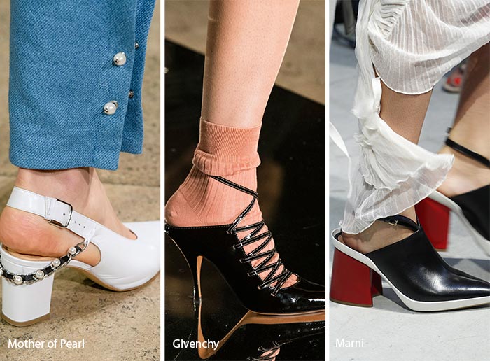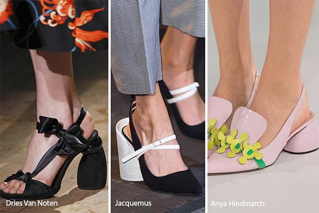 На більшу частину взуттєвих колекцій весна-літо 2017 припадала взуття на низькому каблуці, і незалежно від того, який каблук при цьому використовувався – танкетка, конусоподібні, чарочка, шпилька або каблук цеглинка – всю цю взуття об’єднував один фактор – відкрита п’ята.