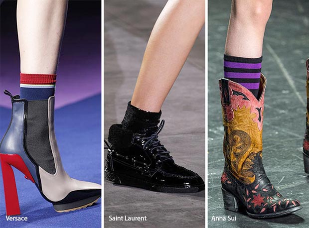 У своїй властивій манері, Dior презентували білі чоботи на шнурівці, в той час як DKNY створює вельми комфортабельний жіночий цибулю в стилі «атлеже», досі не знайомий моді. Ну, а комбінація шкарпеток і черевиків від Fendi, є на сьогоднішній день однією з наших найулюбленіших, хоча, якщо подумати, вона буде виглядати набагато краще в якості різдвяної тенденції, ніж як тренд весни 2017.