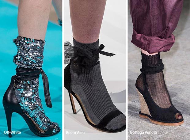 Незалежно від дизайну, будь то сандалі чи босоніжки, які можна носити з колготками або без, це стало формою, яку взяли на озброєння багато дизайнери навесні і влітку 2017 року.