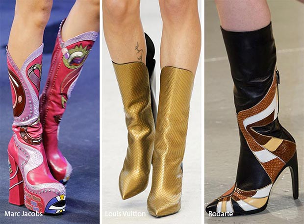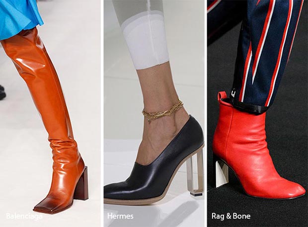 Дуже модно виглядають чоботи з квадратним носком від Balenciaga або їх закруглені версії в помаранчевих черевиках від Celine. Привабливою таке взуття робить їх яскраве забарвлення модний носок, що неодмінно буде оцінений багатьма дівчатами.