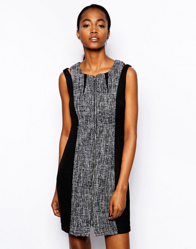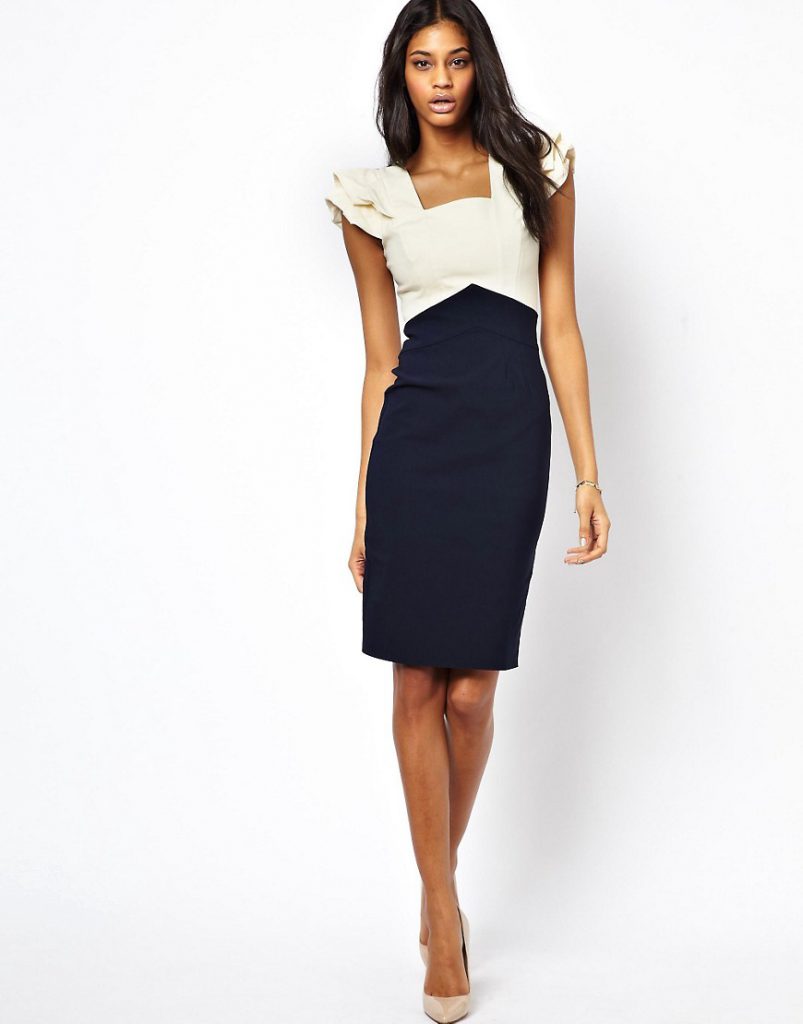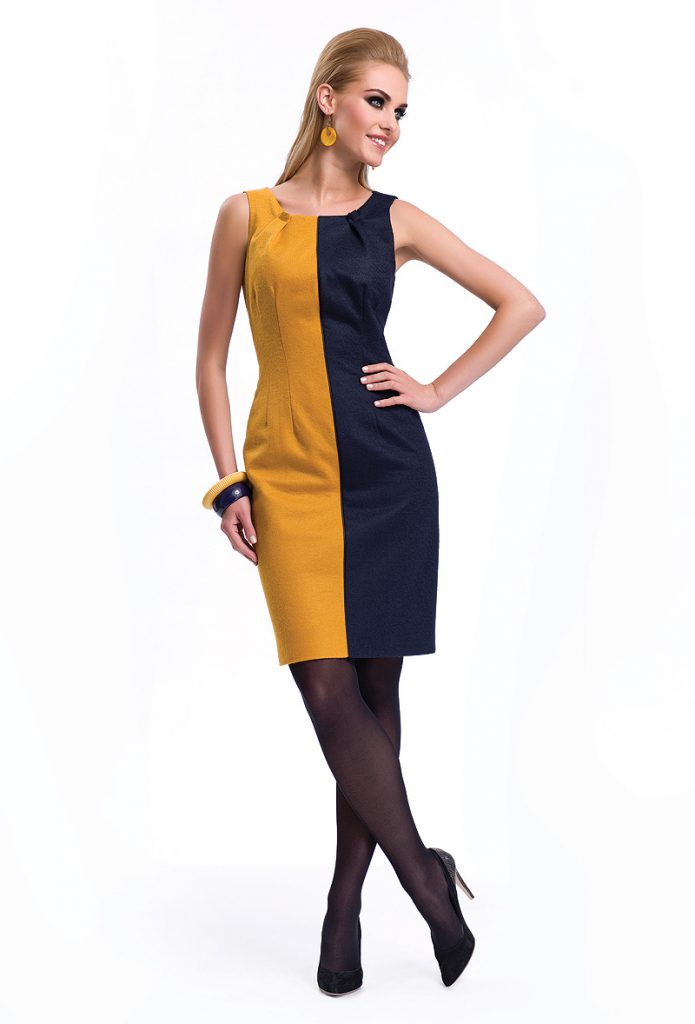 - Стильний «футляр» у двоколірному виконанні — ідеальний вибір для робочих буднів. Елегантний і стриманий, цей крій не виходить з моди вже багато років завдяки своїй універсальності і лаконічності. Підходить для повних, вигідно приховуючи недоліки фігури.