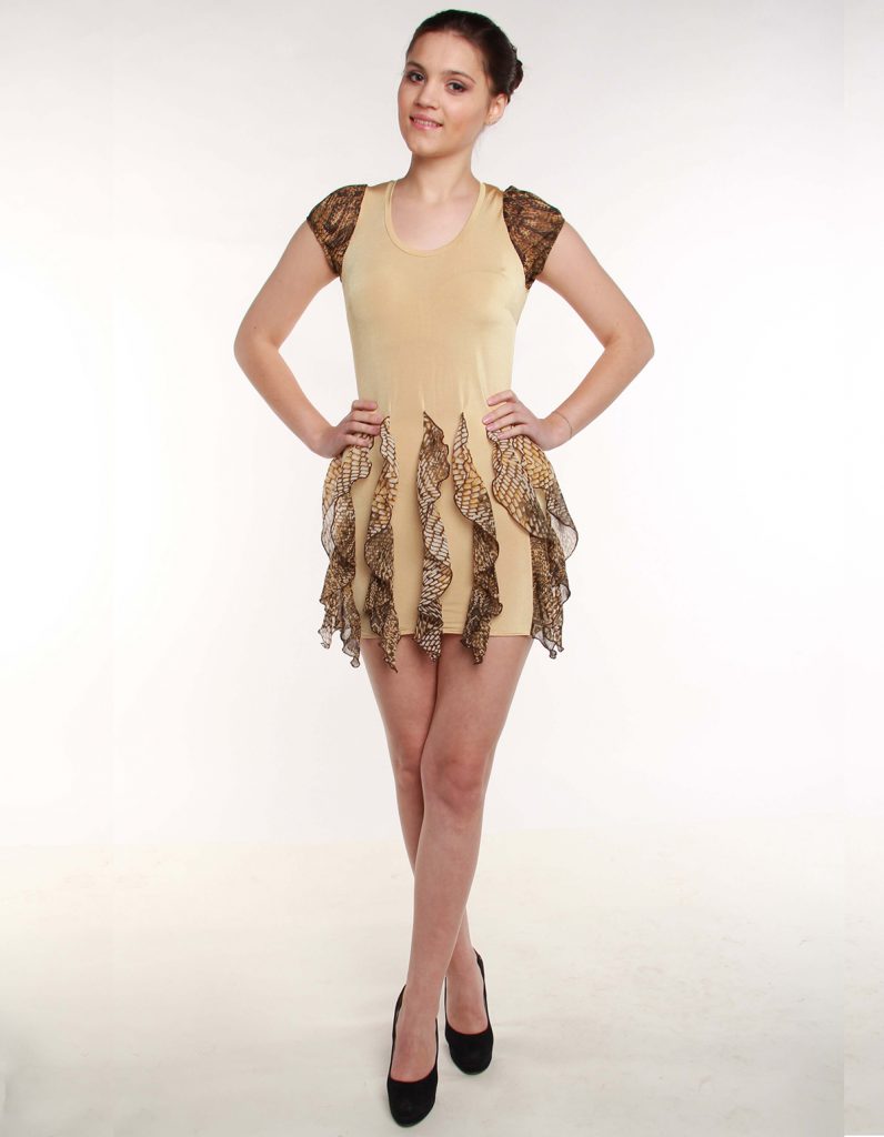 Дизайнери створили немислиму кількість фасонів, різноманітність яких кожна модниця знайде сподобалася їй вбрання. Його одягають у звичайній обстановці — кожен день і для особливих подій. Перевагою є те, що сукня зі вставками практично завжди знаходиться в топі.