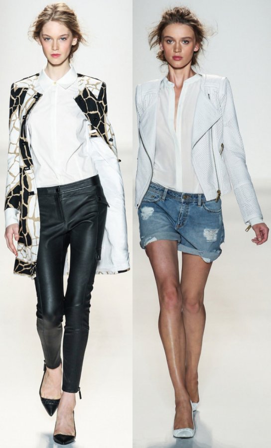 Характерно те, що зараз змішують в одному ансамблі речі несхожих текстур (наприклад, лакову шкіру і замшу). Можна експериментувати зі сміливими поєднаннями, які раніше здавалися неприпустимими. Почитайте більш докладно: Модні принти і візерунки тенденції весни-літа 2014 року і Леопардовий принт на одязі для жінок 2014 -2015 рр.