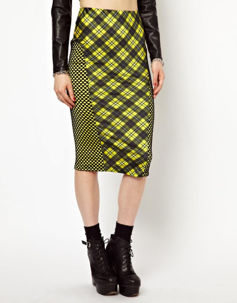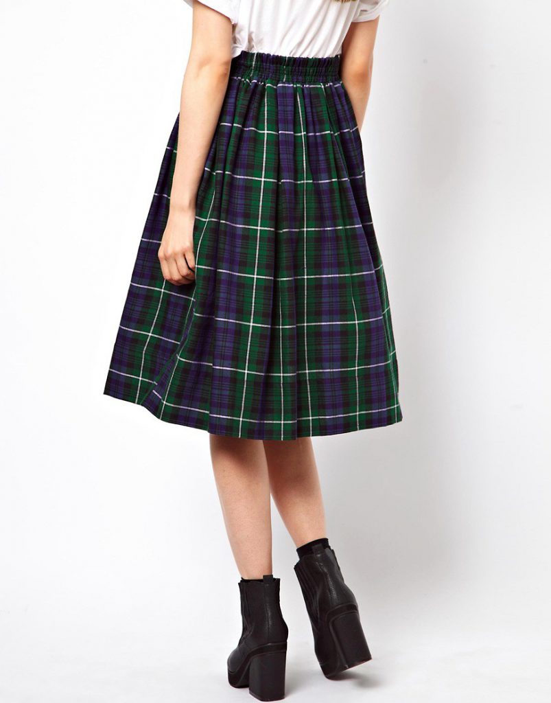 Діагонально спрямовані лінії, що створюють шотландську клітку, з якої пошито спідниця або брюки, не так сильно збільшують фігуру візуально, як прямі.