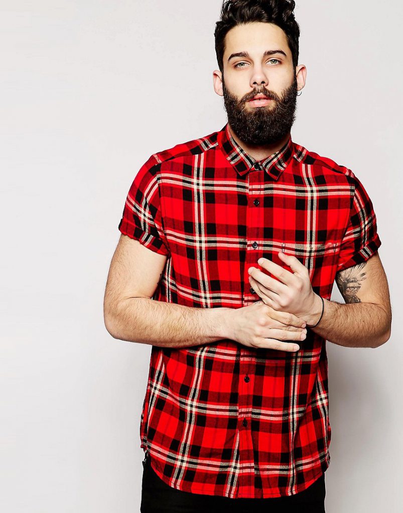 - Особливим шиком зараз вважаються матеріали з червоною клітиною. Це можуть бути моделі з чергуються червоними і білими квадратами, більш яскраво виглядає союз червоного і чорного, і зовсім вже нетривіально виглядають сині і зелені лінії на червоному тлі.