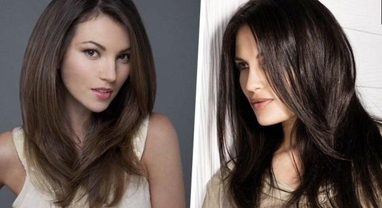 Для зачісок каре з довгим волоссям — стилістами пропонується відпрасована гладкість волосся з прямим проділом волосся, забраними в зручний бік косим проділом
