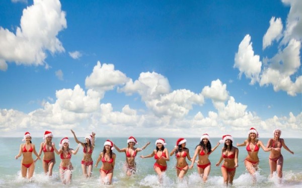 Невгамовні австралійці, у яких все, не як у нормальних людей Північної півкулі, відзначилися і на цей раз. Ну де ще в світі Новий рік відзначають під полуденним спекою січня, з коктейлями і плавальними матрацами? Навіть Дід Мороз у них справжній австралієць – з модною бородою і в червоних шортах. І це його єдина одяг!
