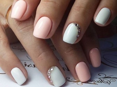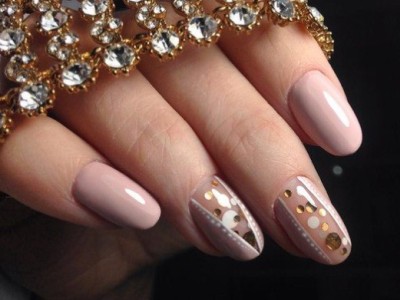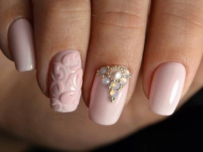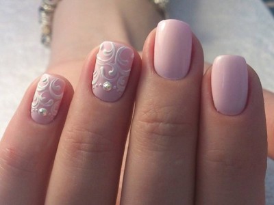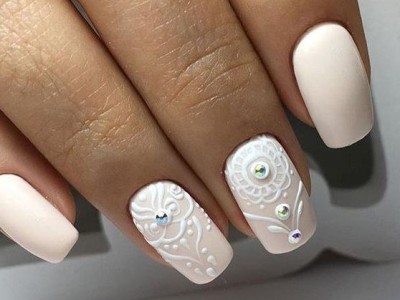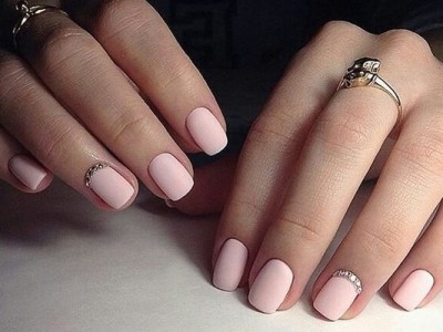 Простий, елегантний, завжди модний – мова про манікюр на коротких нігтях або довгих будь-якої форми, але – в пастельних відтінках. Камуфлює лак, блідо-припыленная гамма, і не потрібно ніякого декору. Він підійде до будь-якого плаття і не стане відволікати зайвої уваги. Пальці відразу здаються наче тонше і витонченіше. Дизайн в стилі «нюд» вигідний тим, що його можна носити і після весілля. Стрази, ліплення або чудові малюнки, якщо виконані гель-лаком, протримаються довго, але можуть швидко набриднути, так і у весільній подорожі з легкими нарядами будуть дисгармонировать. А простий пастельний колір підкреслить колечко з будь-яким іміджем.