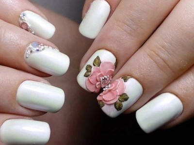 Цей вид дизайну традиційно вважається весільним, правда, зараз він зазнав деякі зміни. Тепер нареченої не носять на довгих нігтях квіточки майже в натуральну величину. Гнучкі 3-D та 4-D гелі схожі на пластилін, і з них можна ліпити витончені пелюстки, майже такі ж тоненькі і невагомі, як справжні. Ними прикрашають як зовсім коротенькі нігтики, так і трохи подовжені мигдалеподібні. Пелюстки майже не створюють незручностей при носінні, а виглядають просто чудово! Шкода розлучитися з букетом під кінець вечора, але якщо деякі його елементи відобразити в манікюрі, вони залишаться з вами довше.