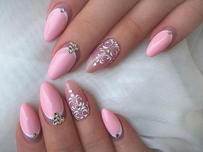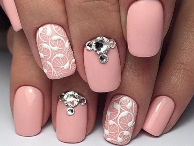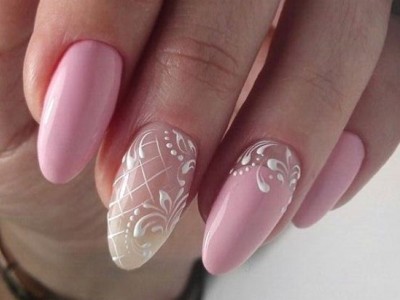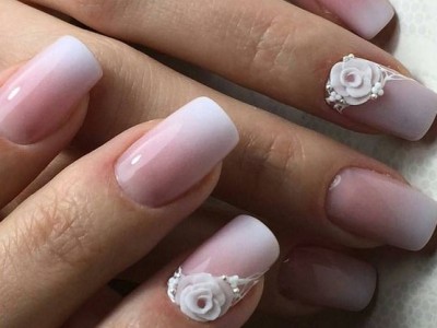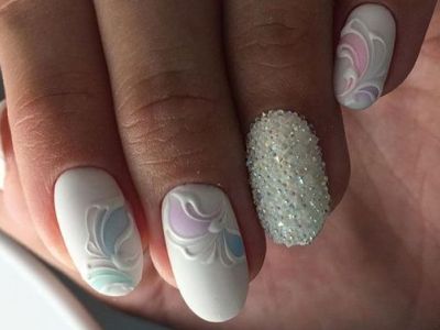 Перше, що необхідно враховувати – нейл-арт повинен збігатися з тематичним оформленням урочистості. Непогано, якщо він буде відображати відтінки аксесуарів, оформлення залу, букета… найактуальніші кольори в цьому сезоні класичні – білий, нюдовая гамма, особливо припыленные рожевий, бузковий, блакитний.