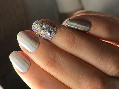 Якщо пігмент вбити в світлий лак, він, як хамелеон, підлаштується під неї і буде елегантно і ненав’язливо поблескивать. Нюдовая основа дає легке сяйво перламутру, втиркой-призмою можна прикрасити один пальчик, то ж стосується традиційних «золота» і «срібла» на чорній підкладці.