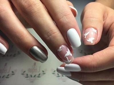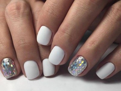 Окремої згадки заслуговує останній втирочный писк – пластівці юкі, новинка 2017 року. Самим легким рухом посадіть їх на камуфлює або білий лаки, і вони доповнять невинний образ красуні-нареченої.