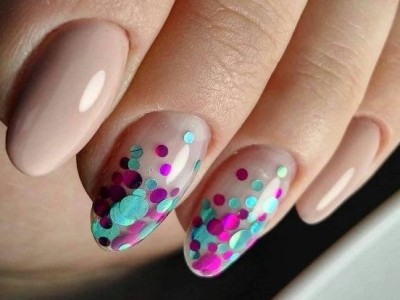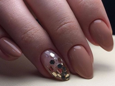 Тоненькі паєтки на піку популярності і на нігтях виглядають естетично. Використовуйте камифубуки золотистої гами, і вони стануть гармоніювати з новознайденим золотим кільцем. До такого декору потрібно дуже густа база, щоб кружальця в ній грунтовно загрузли, інакше краєчки будуть зрадницьки стирчати з покриття.