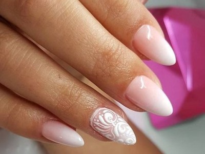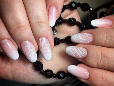 Вічний супутник класичного весільного образу. Рукавички, фата, підв’язка і… манікюр. Мереживо простіше всього намалювати дотсом, трохи складніше – пензликом, але самий вишуканий малюнок виходить аерографом.