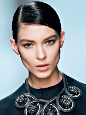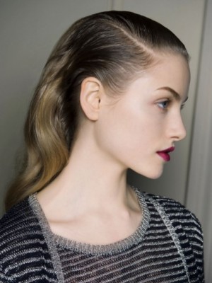 Глибокий бічний проділ повинен розділяти ідеально гладке волосся. Він відмінно виглядає з низьким хвостом або просто заправленими за вуха пасмами. Головне правило – особа повинна бути максимально відкрито.