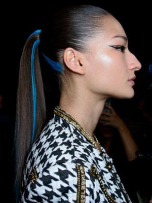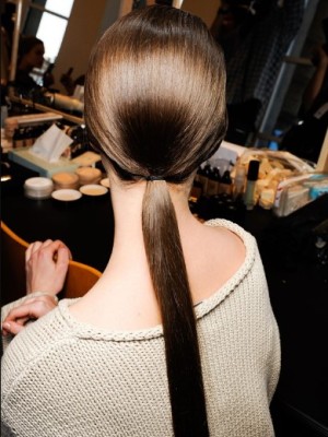 Високий хвіст робиться тепер на самій маківці, як в 90-е, тільки махрові гумки дизайнери не повернули, а воліли обертати тілесного кольору резиночку тоненькою прядкою.