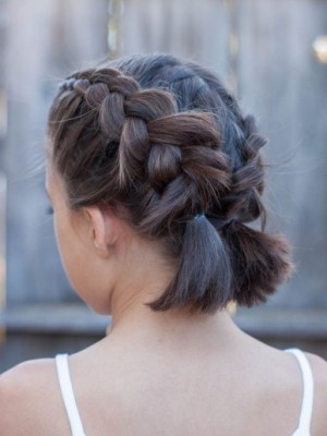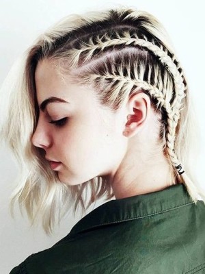 Навіть з дуже короткою стрижкою можна умудритись заплести тоненьку косичку у лоба або зібрати об’ємне плетіння, тримається на чесному слові, невидимки і лаку. Кіски від скронь до потилиці також популярні.
