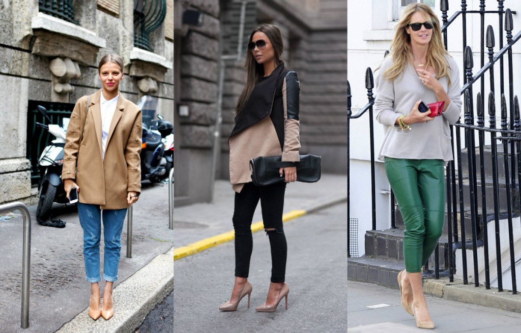 Бежеві відтінки сьогодні в епіцентрі моди. Човники такого кольору обов’язково повинні бути в гардеробі. Це можуть бути замшеві туфлі або взуття зі шкіри, варіанти на товстому, низькому чи високому каблуці. При цьому дуже важливо підібрати потрібний відтінок туфель, який найкращим чином підкреслить тон власної шкіри, адже таке взуття — виключно літній варіант. Чудово підібраний колір взуття повинен чудово зливатися з відтінком шкіри. Це досить простий прийом, однак він бездоганно подовжує ноги.