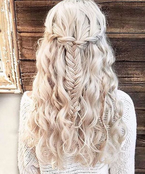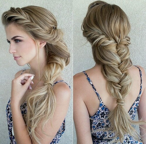 Стильне плетіння у вигляді зачіски «риб’ячий хвіст», водоспад і французької коси, виконані в розхристаних вигляді і злегка випущені пасма будуть виглядати дуже ефектно.