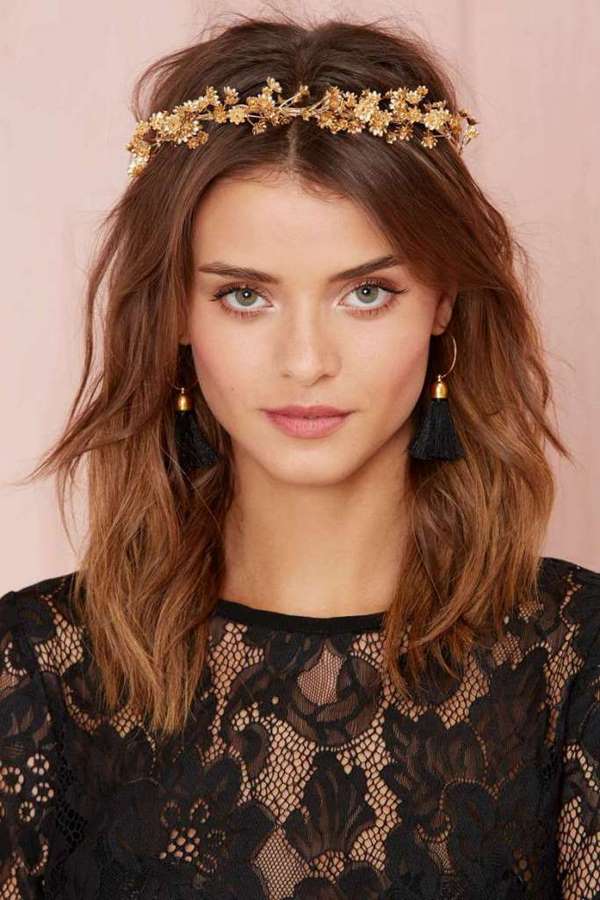 Вечірні зачіски на середні волосся ефектно виглядають з різними стрижками у вигляді каре, боб, каскад і всіляких варіаціях цих стрижок. У зв’язку з тим, що тенденцією стала недбалість і легкий безлад» на голові, то відмінно виглядають легкі хвилі і кучері на волоссі.