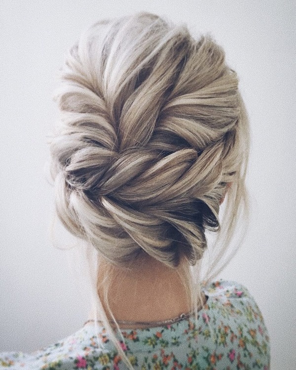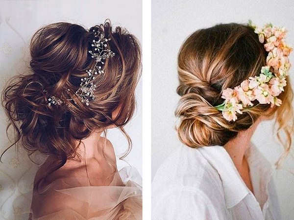 Вечірній пучок прекрасний в низькому і високому вигляді, об’ємний і класичний, з використанням плетіння і шпильок з камінням. При бажанні можна використовувати квіти, в тому числі і живі, що дуже мило.