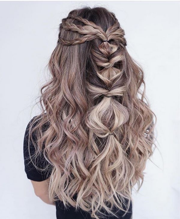 Для юних дівчат прекрасною ідеєю будуть два пучка, доповнені косами, або ж пучок з розпущеним волоссям, що став мегамодным, серед селебріті в тому числі. Неодмінно зачерпніть цікаві ідеї в нашій галереї.