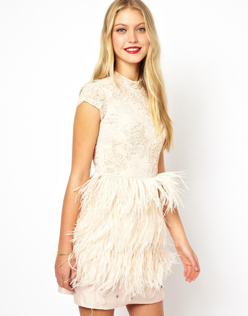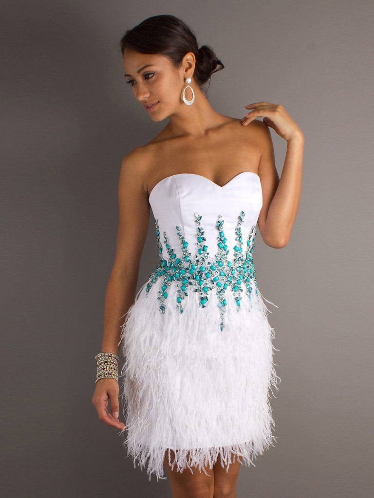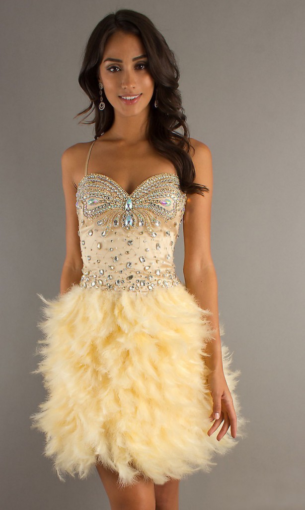 Сукні з пір’ям немов створено для вечірніх виходів. Шикарне і ефектне, воно справить фурор, де б ви не з’явилися. До того ж можна вибирати будь-якої довжини, кольору, з будь-яким розташуванням пір’я, з будь-спідницею. Треба мати певну сміливість, щоб зважитися надіти настільки помітний наряд. Але вже якщо ця сміливість присутній, то слід бути готовою до підвищеної уваги з усіх боків. Важливі поради з вибору: