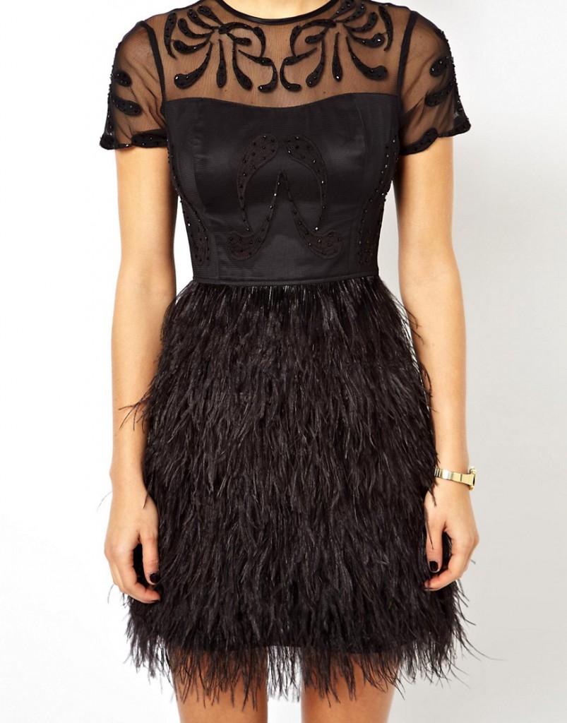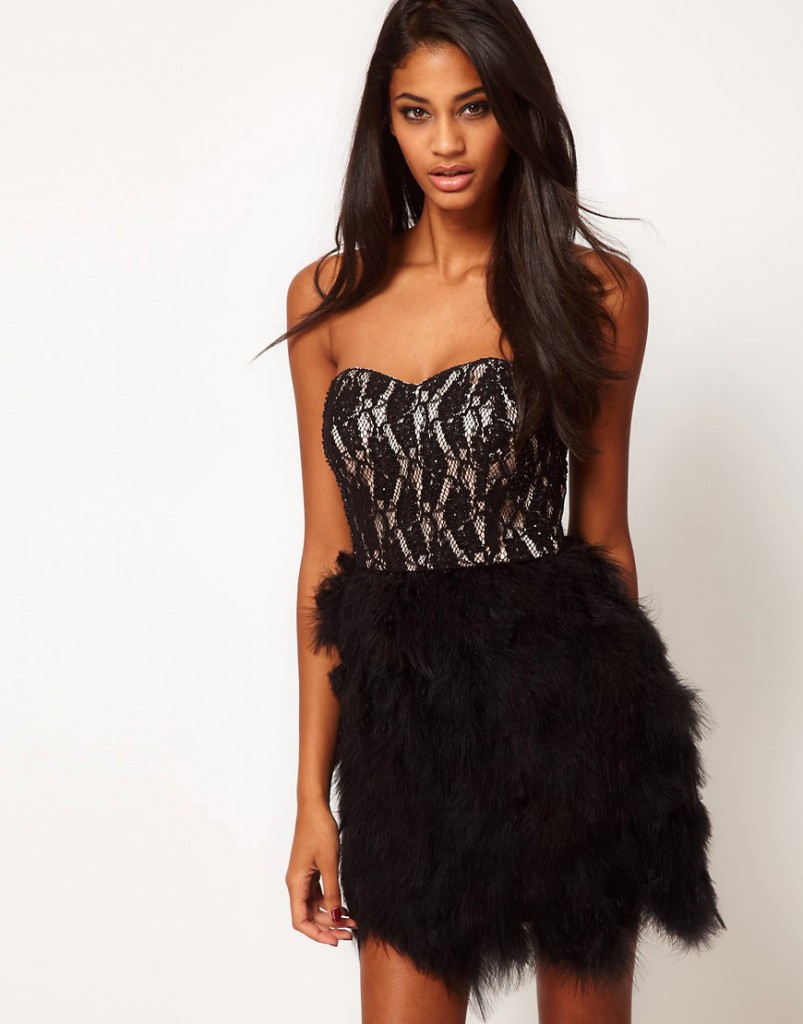 - Чорний колір. Цей універсальний колір у поєднанні з пір’ям дуже гармонійно і стильно виглядає. До того ж вибравши вбрання чорного кольору, ви можете бути впевнені, що будете виглядати відповідно моді і в той же час розкішно. До того ж, чорне плаття дуже струнким. Але не думайте, що вибравши біле плаття, ви станете немодною. Білий теж в тренді, як і рожеві відтінки