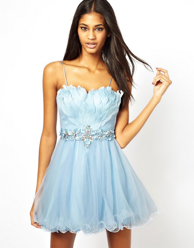 - У нинішньому сезоні дуже популярні асиметричні вбрання з пір’ям, з кроєм, коли один рукав або одне плече оголено. Такий помітний наряд не залишить жодну жінку непоміченою. Але це, звичайно, виключно вечірнє плаття. Буде ідеально, якщо воно зшите з блискучої тканини і прикрашена блискітками — підійде і для випускного.