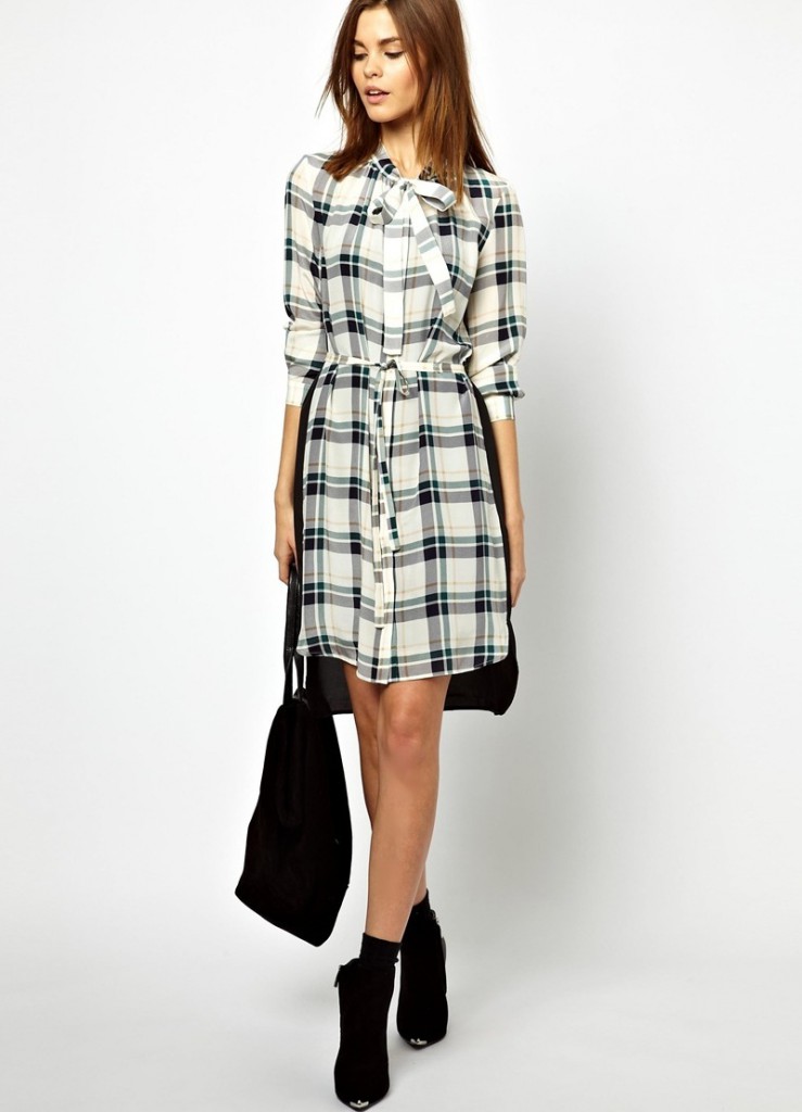 На піку популярності нового сезону – сукня – сорочка (шемизье) з картатим малюнком.