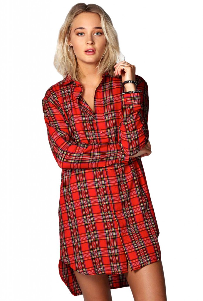 — для дам з широкою талією прийде на допомогу подовжена картата сорочка прямого крою;
