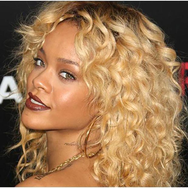 Прямі волосся середньої довжини перетвори у грайливі кучері, як у Ріанни. Вологі волосся збризни спреєм, потім починаючи з верхівки, по направленню до лиця накрути пасма шириною 3-5 см на спіральний або тонкі звичайні бігуді. Знявши бігуді, не розчісуй волосся. Розітри пальцями гель і, витягаючи їм кожен локон, фіксуй його. Закріпи зачіску лаком природної фіксації і насолоджуйся стильного жіночого зачіскою актуальною в 2017!