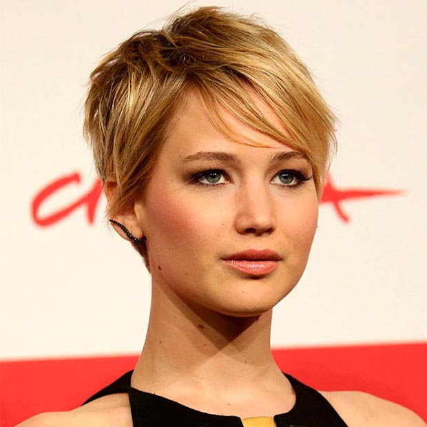 Оригінальна стрижка як у Дженніфер Лоуренс, укладається дуже легко і швидко. Вимий волосся і висуши їх. Потім гладко зачеши їх з боків і закріпи з допомогою фіксуючого гелю або желе для волосся. Чубок зроби косою, уклавши набік. Витягни кілька прядок на чубку, на маківці і потилиці. Нанеси на них лак сильної фіксації і щипцями «проутюжь» від коренів до кінчиків. Кілька прядок акуратно загорни у вузлики-колечка і ще раз закріпи спреєм.