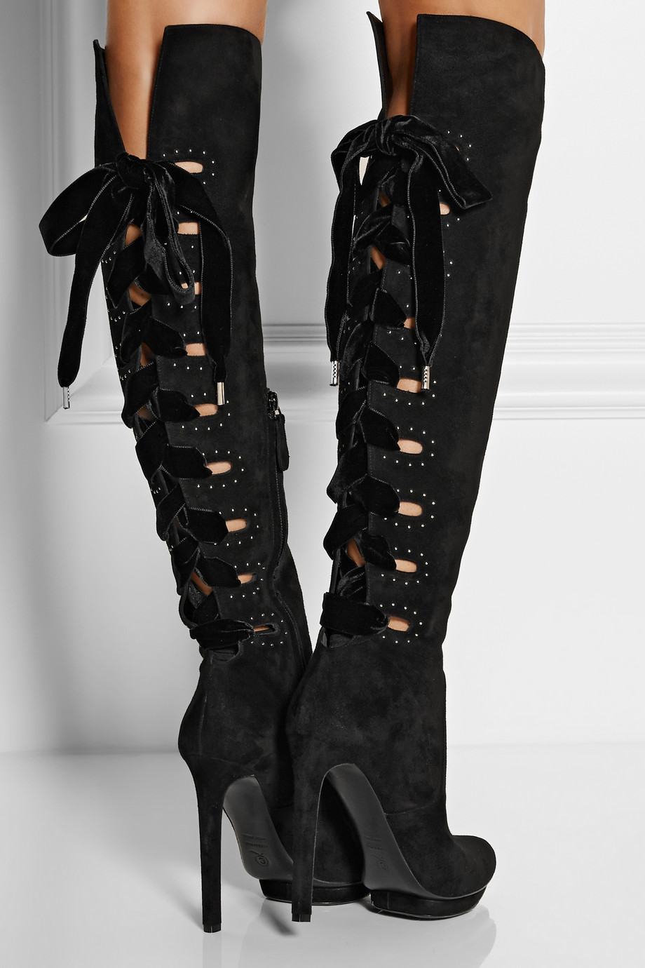 • вертикальна шнурівка по всій висоті – головний тренд у високих чоботях 2017.