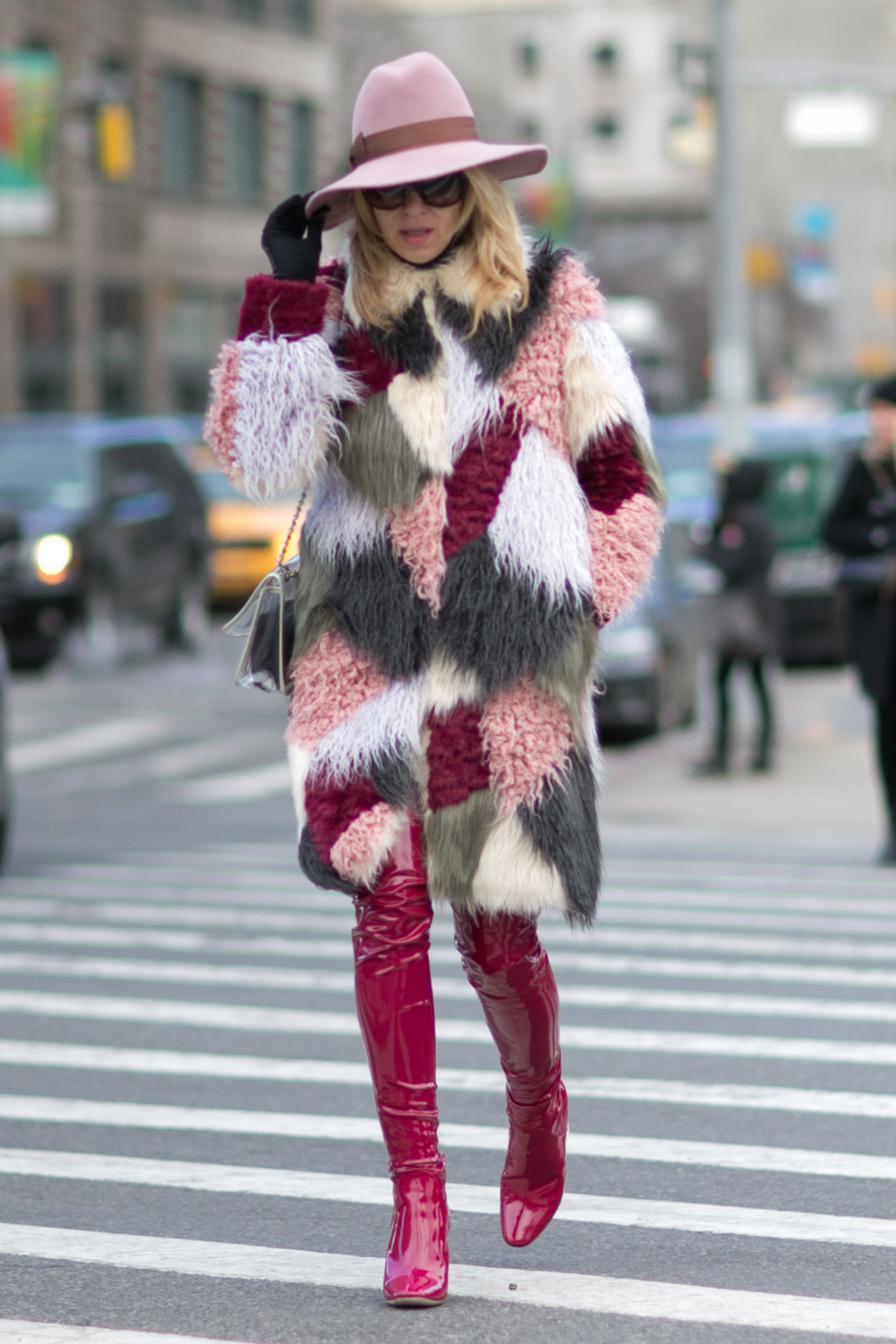 Під комбінованими матеріалами модні блогери і дизайнери розуміють використання шкіри різних типів, яка буде прикрашена хутряними помпонами і вставками в зимових моделях, з менш кричущою замшею – у весняно-осінніх. При виборі виробів, виконаних повністю зі шкіри або з лакової шкіри, слід враховувати м’якість матеріалів. Якщо вони будуть дуже щільними або штучними, сидіти в таких чоботях буде незручно.