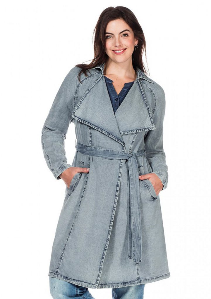 Справжньою знахідкою стане джинсовий плащ для вагітних дівчат. Спеціальний крій з завищеною талією створить комфортні відчуття при будь-яких термінах вагітності. Актуальні також жіночі трапецієвидні моделі, а також з прямим кроєм.