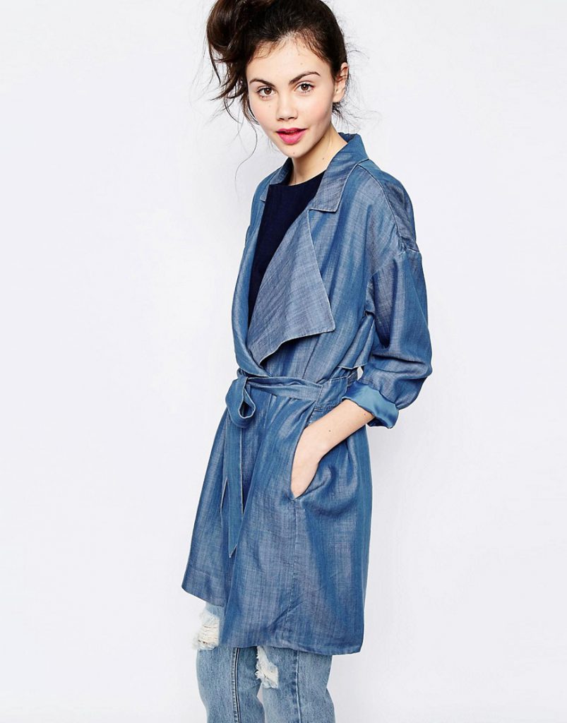 Джинсова тканина була цікава завжди, незважаючи на тенденції в моді. А в цьому році вона виявилася ще і трендовим явищем, завдяки поверненню на пік популярності такого предмета одягу, як плащ з деніму. Популярність він придбав в 1901 році. Але тоді він вважався винятково чоловічим одягом. Пізніше, правда, стали з’являтися і жіночі плащі.