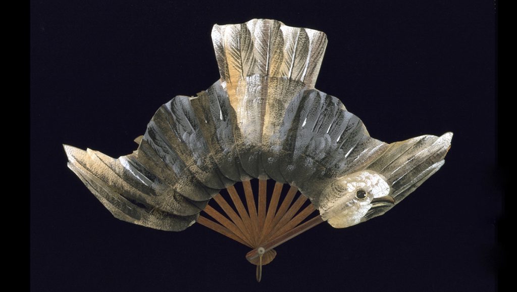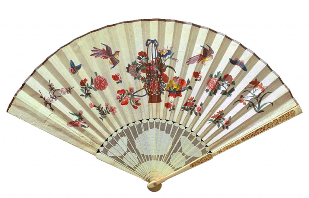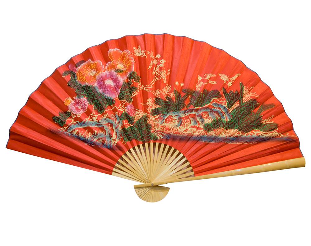- Якщо маленькі моделі з пір’я страуса призначені для ручного носіння, то великі з слонової кістки — від півметра і більше, для того, щоб їх вішати на стіни в якості декоративної деталі інтер’єру. Такі експонати зазвичай вішають в розгорнутому вигляді. Саме так на ньому буде видно малюнок, нанесений умілими руками майстра. Іноді це настільки тонка робота і ретельно промальовані сюжетні композиції, що з ними часом не можуть зрівнятися і картини. Зазвичай настінний віяло спочатку білий, а потім на нього вже наноситься малюнок.