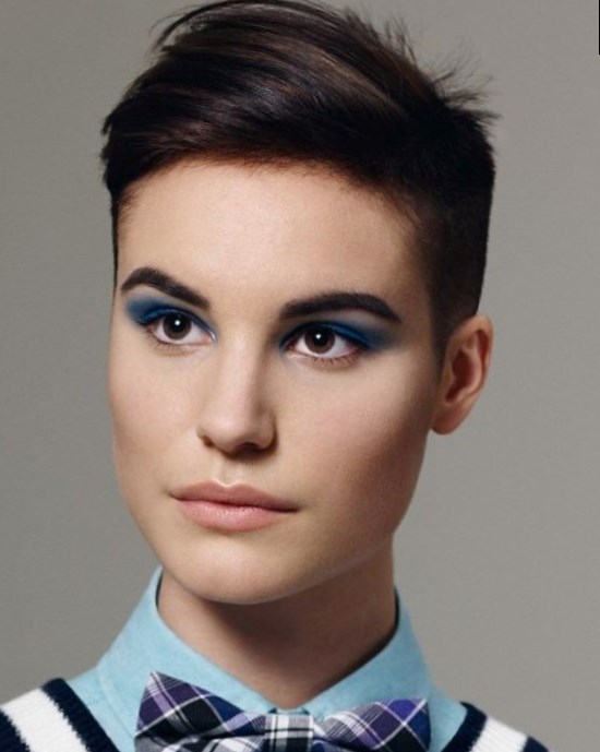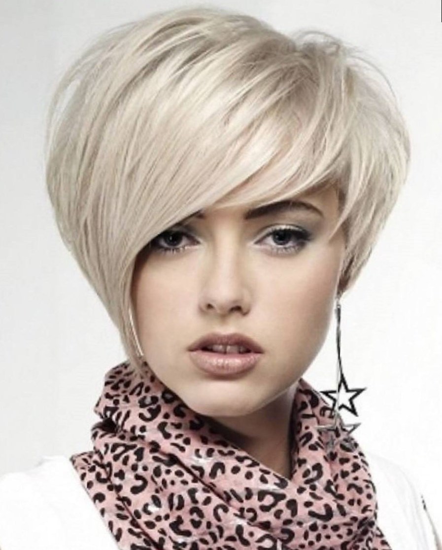 Сміливим дівчатам можна вибрати коротку зачіску з довгою чубчиком, що спадає на обличчя. Вона може бути як рівної структури, так і градуйована.