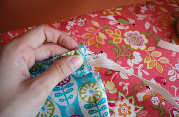 Закріпіть шпильку на кінці стрічки і просуньте стрічку в куліску.