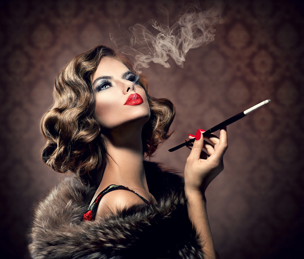 Образ доповнювали темні панчохи, а власниці струнких ніг сміливо використовували сітку. Взуття – туфлі на стійкому, середньої висоти каблуках. Останнім штрихом був мундштук: як не парадоксально, «здорові» 30-ті модні жінки часто курили.
